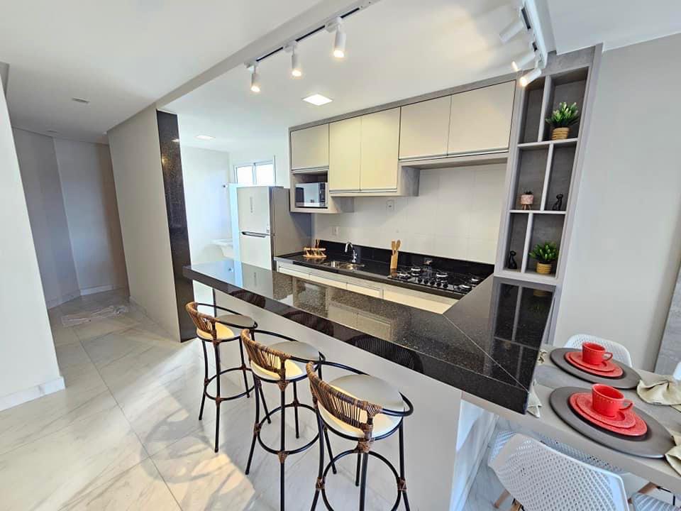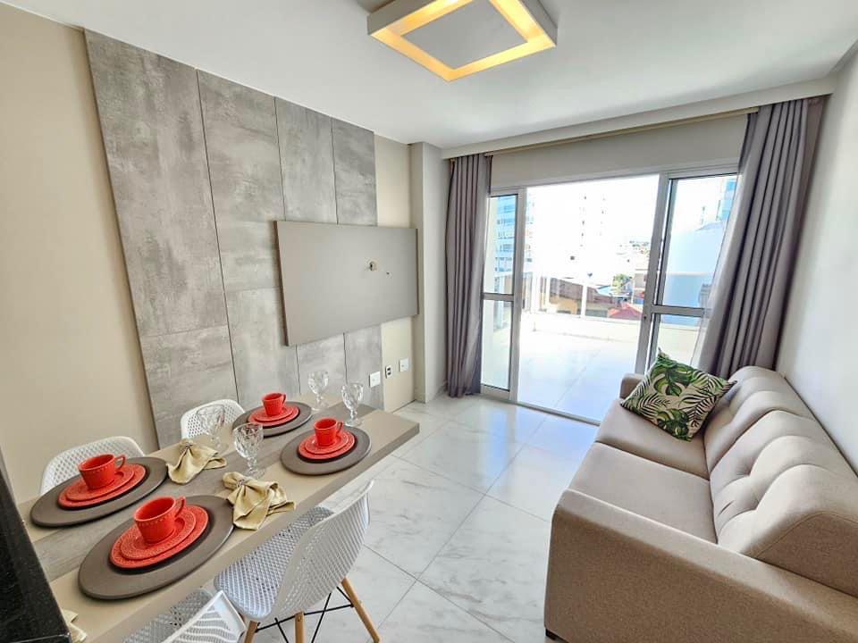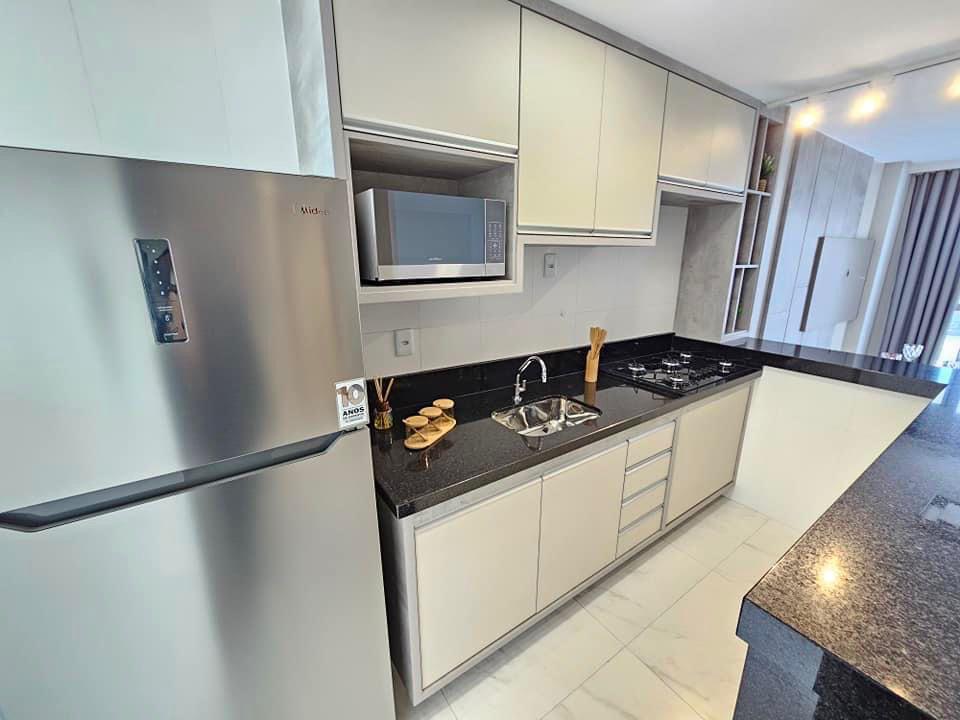 • Apartamento com 94m². • Mobiliado. • 3 quartos sendo 1 suíte. • 2 varandas. • Sala. • Varanda gourmet. • Cozinha americana. • Área de serviço. • Banheiro social. • 2 vagas de garagem.
